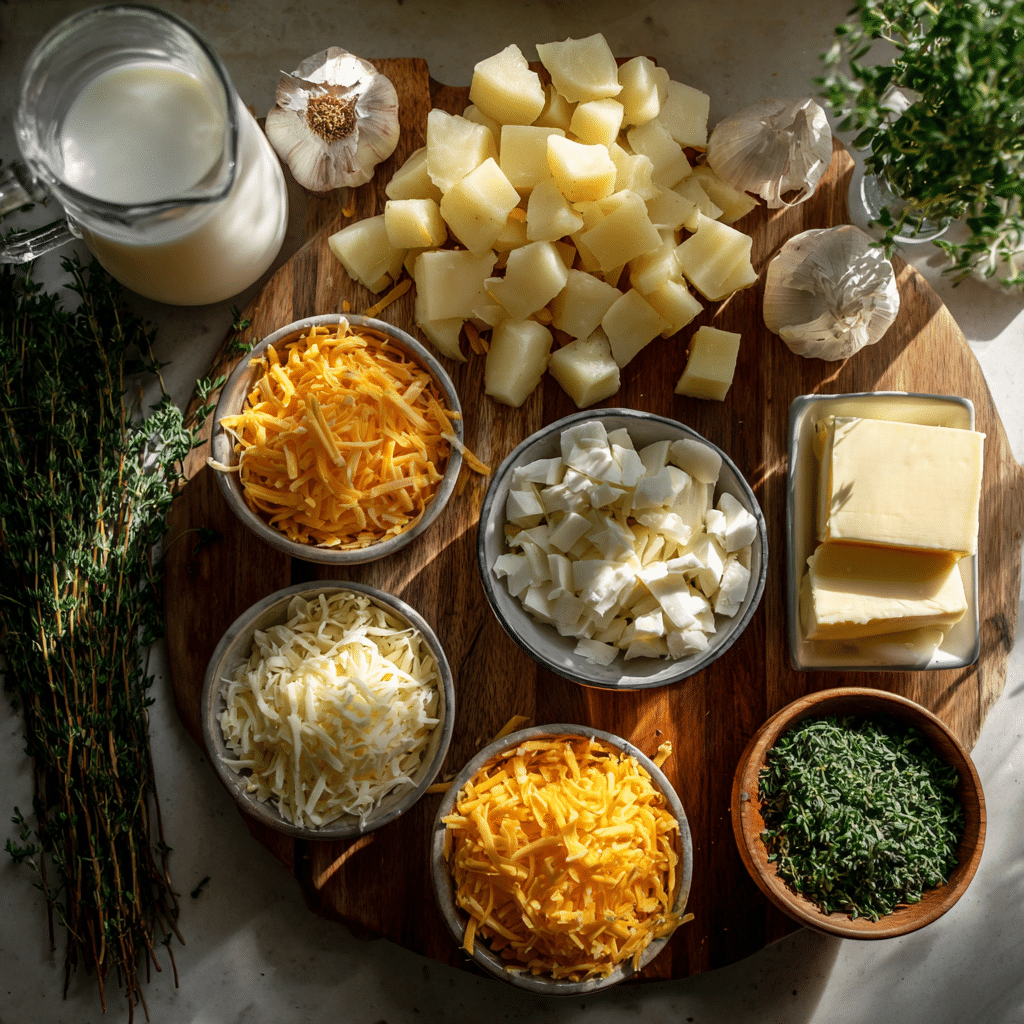 To make this dish shine, start with Yukon Gold or Russet potatoes. Their naturally buttery texture makes the soup velvety without needing heavy cream. Use sharp cheddar for that signature bite it melts beautifully and balances the earthiness of the potatoes. Fresh herbs like thyme, parsley, and chives add a bright finish that keeps the soup from feeling too heavy. The interplay of creamy and herbal elements gives Cheddar Garlic Herb Potato Soup its unmistakable charm.